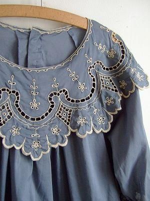 こちらはnesessaireさんより届きました新作ブラウスです。フロントのカットワーク刺繍が施された大きな襟が目を惹く素敵なブラウスです。裾のタックや背中ボタンも◎。胸元からギャザーが入りふわっとかわいいシルエット。とってもきれいな色のブラウスです。color ブルー×アイボリー(刺繍糸)、素材 cotton100%、made in CHINA、size F、着丈61cm、バスト110cm、 袖丈42cm、肩幅38cm