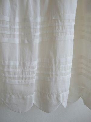 こちらはnesessaireさんより届きました新作スカートです。フロントにはかわいいフラワー刺繍が、ウエスト・裾にはタックが施してあります。裾は波型に仕上げられており、ふわっとかわいいシルエットです。ボトムにはパンツやレギンスを合わせて・・・ペチコートとしてもお使い頂けます。アンティークな雰囲気のこだわりいっぱいの素敵なスカートです。color オフホワイト、素材 cotton100%、made in CHINA、size F、着丈53cm、ウエスト78cm、※同素材の薄手のコットンの裏地が付いております。サイドにフックが2つとファスナーがついております。