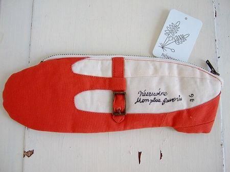 こちらはnesessaireさんより届きました人気定番のストラップシューズ型ポーチの新色です。ロゴはハンドペイントで中生地はドット柄。小ぶりですので携帯にも便利です。ペンケースとして・・・またリップクリームや薬などを入れて。いろいろな使い道が出来る素敵なポーチです。