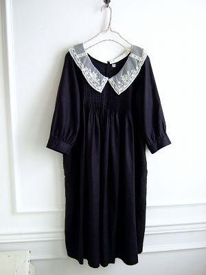 color ブラック、素材 Linen100%、made in CHINA、size F、着丈95cm、バスト102cm、 袖丈41cm、肩幅39cm、※裏地は付いておりません。チュールレース襟はスナップボタンで付いておりますので、取り外し可能です。