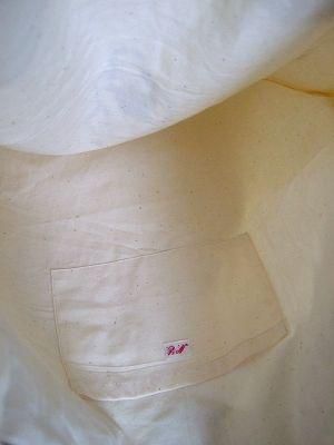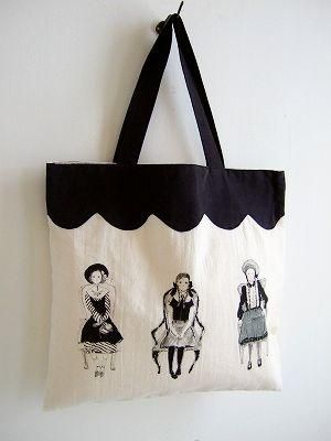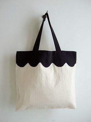 カラー アイボリー×ブラック、 素材 cotton100%、別布(Linen55%、Silk45%)、 サイズ 36cm×37.5cm、持手48cm※まちはありません。