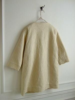 color ベージュ、素材 cotton100%、(中綿ポリエステル100%)、(裏地cotton100%) made in CHINA、size F、着丈80cm、バスト100cm、 袖丈44cm、肩幅40cm