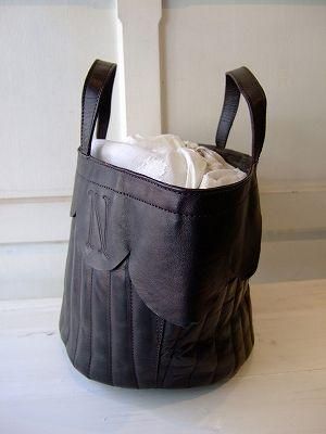 colorダークブラウン、素材 牛革、(別地)コットン100%、原産国 インドネシア、size 直径22cm、高さ22cm、(持ち手)27.5cm※自然素材のため、傷、色ムラがはいっている場合がございます。ご了承下さいませ。