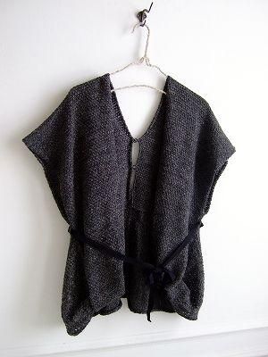 こちらはhermaphroditeさんより届きました新作カーディガンです。春夏のコットンリネン素材で大好評の変形カーディガンがウール素材で秋冬仕様になりました。編地の異なる裾部分はくるっとねじり動きのあるちょっぴり変わった素敵なデザインです。肩を落としたルーズなシルエット。リボンと背中のボタンでかわいさをプラス。ワンピースの上からさらっと羽織って。パンツスタイルにもぴったりです。color グレー、素材 ウール60%、リネン20%、アクリル12%、アルパカ8%、made in CHINA 、size 38、着丈58cm、肩幅 38cm、袖丈約22cm
