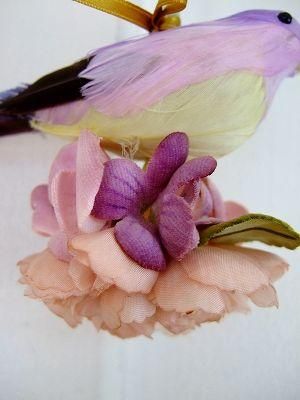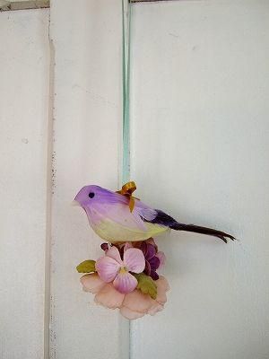 color パープル、ピンク、グリーン、、素材 コットン、プラスチック、made in JAPAN、size (コトリ)12cm、(お花)直径6cm、(ひもの長さ)15cm