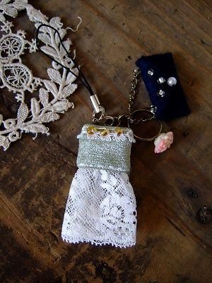 こちらはnesessaireさんより届きましたとってもかわいいストラップです。ベロアのトップにレースのスカートのパーティードレス。フエルト素材のビーズを施したパーティーバッグ。ローズレリーフのピンクのリング。ハンドメイドで制作されたとっても繊細で素敵なストラップです。color カーキ、ブラック、ホワイト、ピンク、ゴールド、素材 真鍮、コットン、ウール、made in CHINA、size 全長11cm、(ドレス4.5cm)