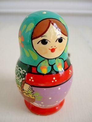 こちらはロシアの民芸品マトリョーシカです。次から次へと小さくなった女の子が出てきます。一番小さなマトリョーシカに、願いをこめて息を吹き込んで閉じこめると願いが叶うという言い伝えもあるそうです。早速マトリョーシカに願いを込めて。color グリーン、レッド、パープル、ブルー、素材 木製、made in RUSSIA、size 直径4.5cm×9.5cm(一番大きいマト)、5個セット