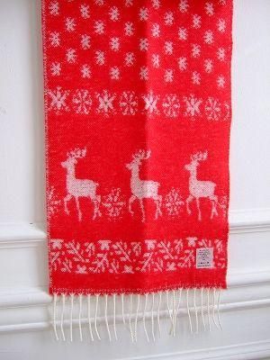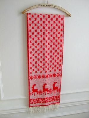 color レッド、オフホワイト、素材 アクリル85%、ナイロン9%、ウール6%、made in France、size 31.5×173cm(フリンジ8cm)