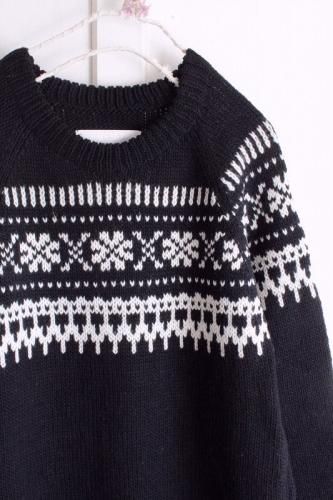 【made in Peru】 四つ葉のクローバーロングニットBK×WH