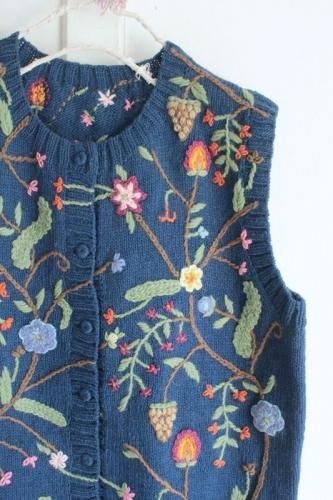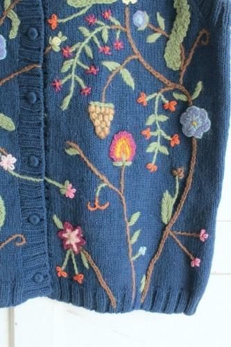 7つ並んだ毛糸のくるみボタンがアクセント。