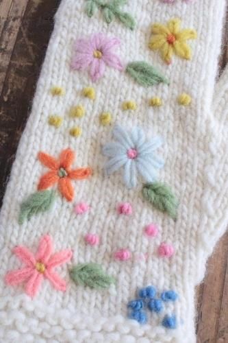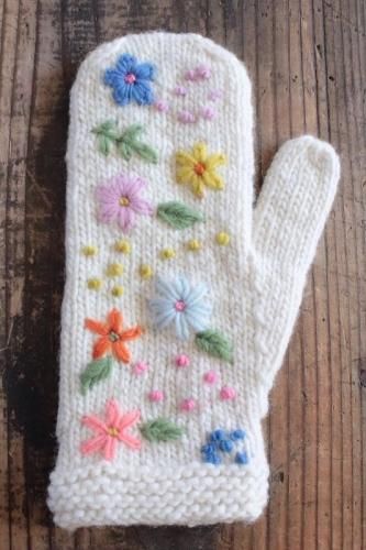 【made in Peru】フラワー刺繍ミトンWH