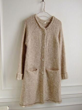 color アイボリーベージュ(ミックス)、素材 アクリル36%、ウール31%、コットン26%、ナイロン4%、アルパカ3%、made in China 、size 38、着丈96cm、バスト80cm、袖丈62cm、肩幅 38cm、※裏地は付いておりません