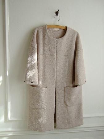 color アイボリーベージュ、素材 ウール80%、ナイロン13%、アンゴラ7%、made in Japan 、size 38、着丈90cm、バスト98cm、袖丈44cm、肩幅 38cm、※裏地は付いておりません 。鍵ホック(3個)で留めて頂くタイプとなります。