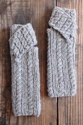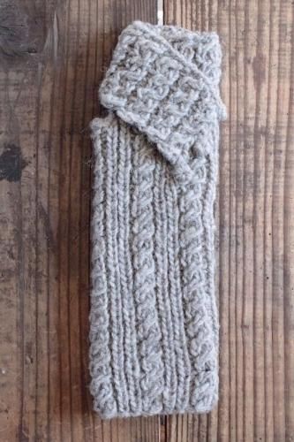 【made in Peru】ケーブル編みボタンアームウォーマーGY