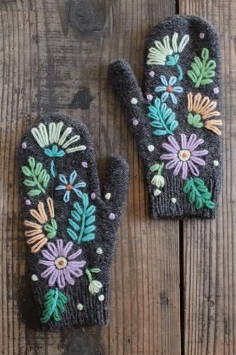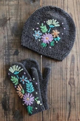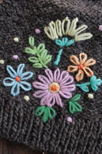 パステルカラーのお花のハンド刺繍が魅力的です。