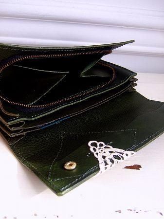 こちらは職人さんが1点1点手作業で丁寧に仕上げて下さいましたウォレットです。。5つの仕切り・大きく開くコイン入れ。とっても使い勝手のよいお財布です。。カラー モスグリーン、 素材 牛革、コットン、 サイズ 9×19.5cm、(厚さ 約3.5cm) made in Japan ※自然素材のため、傷、色ムラがはいっている場合がございます。ご了承下さいませ。水ぬれ(雨・汗)によって色落ち、色移りする事があります。ご注意下さいませ。