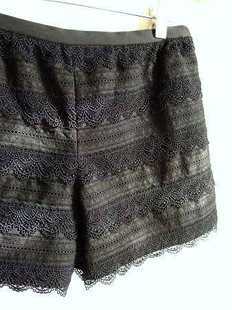 color ブラック、素材 (表地)ポリエステル70%、レーヨン27%、ポリウレタン3%、(裏地)ポリエステル100%、(レースA・(表)レーヨン100%、(裏)コットン100%、レースB・コットン100%)、made in CHINA、size 38 、着丈31cm、(股下10cm)、ウエスト65cm、ヒップ100cm、※左ファスナー付き