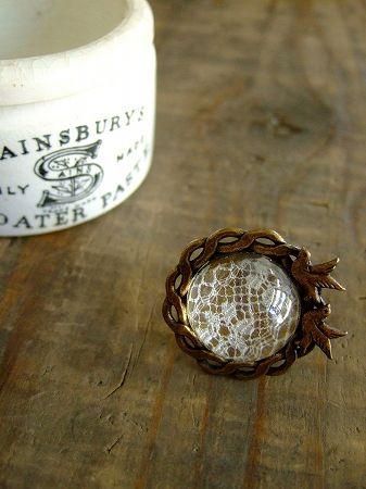 color 金古美、オフホワイト、クリアー、素材 真鍮、コトン、樹脂、made in Japan、size (モチーフ)直径3.5cm、フリーサイズ(サイズの調整が可能です)※レザーのミニポーチ付き