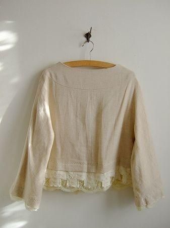 color アイボリー、オフホワイト、素材 コットン55%、リネン30%、ウール15%、(別布コットン100%、裏地 コットン100%) made in CHINA、size F 、着丈52cm、バスト102cm、袖丈54cm、 肩幅38cm、※大きなスナップボタンが4つ付いています。