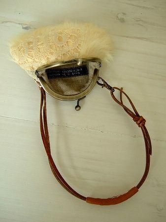color クリーム、アイボリー、ナチュラル、ブラウン、素材 コットン、リネン、ラビットファー、レザー、真鍮、made in Japan、size 8.5×10cm、(革ひもの長さ)30cm、※アンティークホームスパンリネン・フランスアンティークレース使用。レースの柄の出方など多少画像と異なる場合がございます。予めご了承下さいませ。