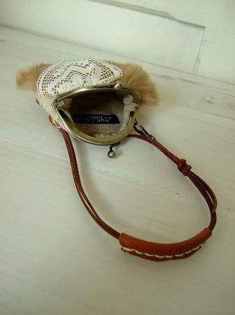color ベージュ、アイボリー、ナチュラル、ブラウン、素材 コットン、リネン、ラビットファー、レザー、真鍮、made in Japan、size 8.5×10cm、(革ひもの長さ)30cm、※アンティークホームスパンリネン・フランスアンティークレース使用。レースの柄の出方など多少画像と異なる場合がございます。予めご了承下さいませ。