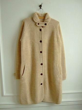 color ベージュ、素材 wool100%、made in China、size 着丈95cm、バスト98cm、 袖丈62cm、肩幅38cm、※裏地は付いておりません。
