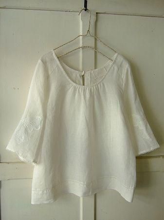 color オフホワイト、素材 リネン100%、(レース部分)コットン100%、made in CHINA、size 38、着丈59cm、バスト100cm、袖丈38cm、肩幅38cm