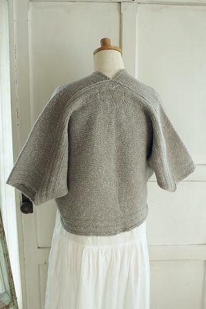 color ベージュ×グレー×オフホワイト(ミックス)、素材 wool70%、Linen30%、made in Japan、size 38、着丈43m、バスト フリー、袖丈約27cm、肩幅約38cm、※数色の毛糸をミックスして織り上げています。