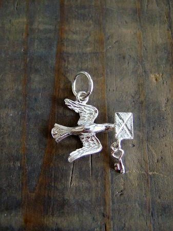 こちらはイギリスより届きましたシルバーチャームです。とっても小さく繊細な作りで楽しいしかけや細工が施されています。イギリスでは記念日ごとに意味を込めひとつずつ買い足しオリジナルのブレスにされたりもしているそうです。なんだかいくつも欲しくなってしまいそうな、また誰かにプレゼントしたくなるようなかわいいチャームです。こちらは「ドーブレター」。鳥が幸運の鍵を運んでいます。color シルバー、素材 silver925、made in England、size 1.5×1.8cm、※チェーンは別売りとなります。メール便発送可。