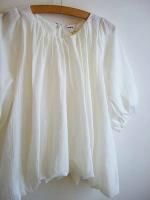 nesessaireさんより届きました春の新作カットソーワンピです。nesessaireさんらしいカットワーク刺繍の付け襟に裾がスカラップ仕上げのマリンスタイル。肩を落としたちょっぴりルーズなシルエットの素敵なワンピースです。color オフホワイト×ブルー、素材 cotton100%、(別布/付け襟 cotton100%)、made in Japan、size F、着丈85m、バスト104cm、袖丈45cm、肩幅38cm