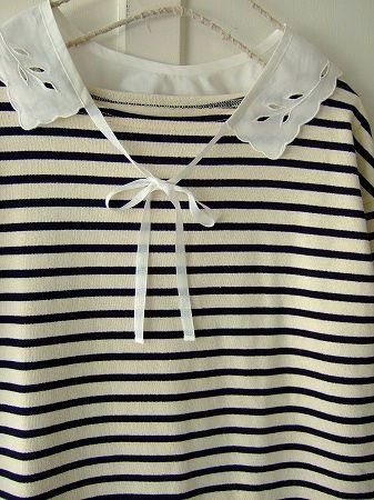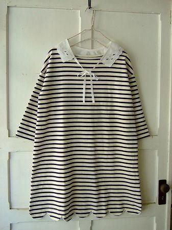 nesessaireセーラーカラー付きボーダーワンピースNV
