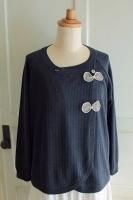 color 生成×ネイビー、素材 cotton100%、(別布/付け襟 cotton100%)、made in Japan、size F、着丈85m、バスト104cm、袖丈45cm、肩幅38cm