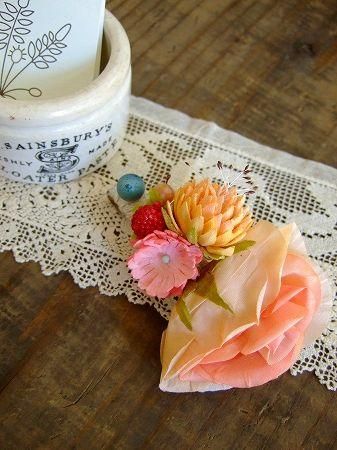 こちらは作家The snowdropさん×nesessaireさんの春の訪れを感じられる新作アクセサリーです。アンティークっぽさを出す為に、わざとバラの花をつぶしたデザイン。とってもきれいなピンクのローズ。元気な色のダリアにおいしそうなベリー。ハッピーに気分になれる春らしいとっても素敵なヘアピンです。