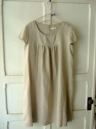 color ナチュラル、素材 Linen100%、size 38、made in Japan、 着丈92cm、バスト96cm、袖丈13cm、肩幅38cm、※裏地は付いておりません。