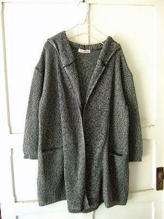 mao made mix糸フード付きロングカーディガン