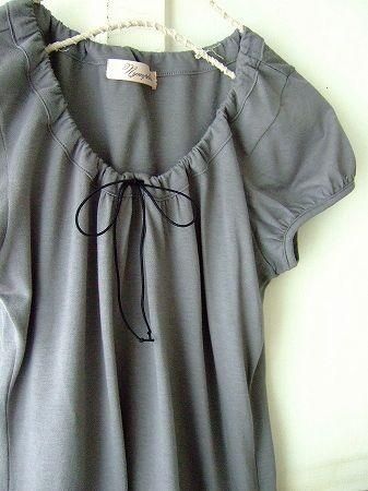 color パープルグレー、素材 コットン50%、レーヨン50%、made in Japan、size F、着丈60m、バスト90cm、袖丈12cm、肩幅38cm
