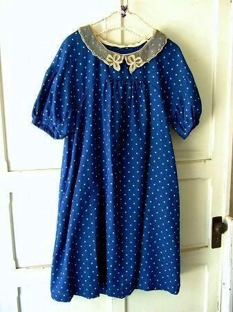 color インディゴブルー(明るめのブルーです)×オフホワイト、ベージュ、素材 cotton100%、made in Japan、size F、着丈97m、バスト114cm、袖丈32cm、肩幅38cm 、裏地は付いておりません。※インディゴ染料で染めてありますので、着用の際は摩擦による色落ち他の衣料への移染にご注意下さい。洗濯の際は多少の色落ち、縮みがございます。他のものとは分けて単独洗いでお願い致します。チュールレース襟はスナップボタンで留めてありますので取り外し可能です。