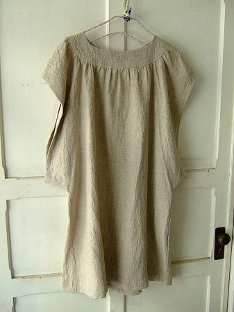 color ナチュラル、素材 Linen100%、made in Japan、size 38、着丈87cm、バスト110cm、袖丈14cm、肩幅38cm 、アームホール84cm、※裏地は付いておりません。