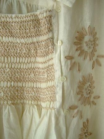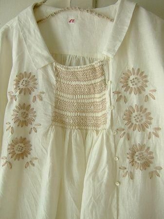 nesessaireハンドスモッキングフラワー刺繍ブラウスWH