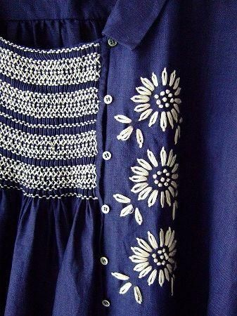 nesessaireハンドスモッキングフラワー刺繍ブラウスNV