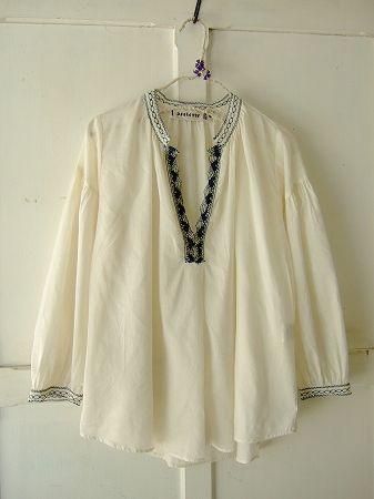 color オフホワイト、ブルー、素材 cotton100%、made in Japan、size 40、着丈69m、バスト120cm、袖丈53cm、肩幅38cm、※フランスアンティークレース使用。