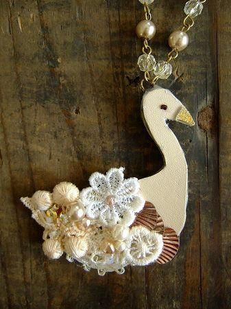 color 金古美、アイボリー、クリーム、オフホワイト、ベージュ、シルバー、ピンクベージュ、素材 真鍮、コットン、ピーズ、スパンコール、made in JAPAN、size (スワンモチーフ5.5×5cm)、チェーンの長さ60cm(アジャスター5cm)、※接着剤が見えている箇所がございます。予めご了承下さいませ。