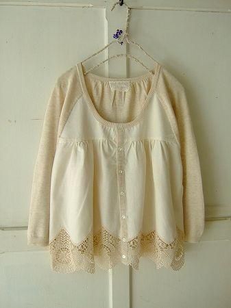color アイボリー、ベージュ、生成り、素材 (前身頃 布帛)cotton100%、(袖・後身頃 ニット)cotton100%、made in China、size 38、着丈58cm、バスト105cm、袖丈45cm、肩幅38cm ※フロント部分は布帛のコットン素材、袖・背中はニット素材の異素材の組み合わせとなっております。