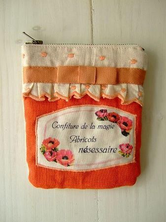 color レッド、アイボリー、ピンク 、中生地ベージュ×オフホワイト水玉、素材 cotton100%、made in CHINA、size 14.5cm×12cm