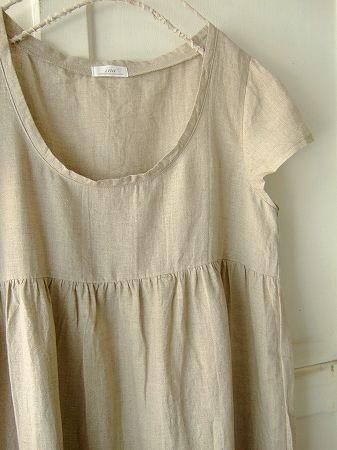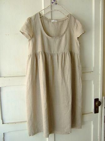 color ナチュラル、素材 Linen100%、made in Japan、size 38、 着丈92m、バスト92cm、袖丈13cm、肩幅38cm、※裏地は付いておりません。
