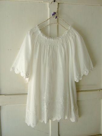 color オフホワイト、素材 cotton100%、(刺繍部分ポリエステル100%) made in CHINA 、size 38、着丈66cm、バスト115cm、袖丈30cm、肩幅 38cm、※裏地は付いておりません