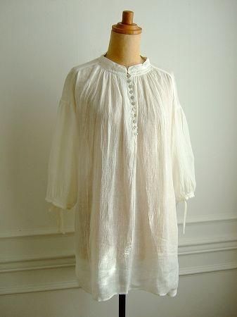 color オフホワイト、素材 Linen100%、made in Japan、size 着丈88cm、バスト125cm、袖丈44cm(袖の切替しより35cm)、肩幅38cm、※裏地は付いておりません。