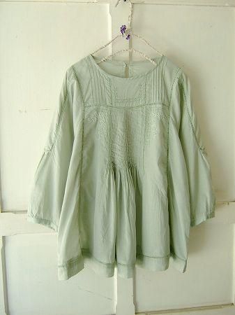 color ミント、素材 cotton100%、made in China、size F、着丈63m、バスト105cm、袖丈43cm、肩幅38cm