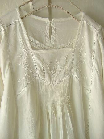 nesessaireフラワー刺繍タックチュニックWH
