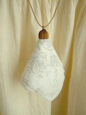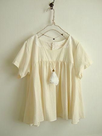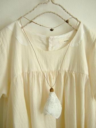 color アイボリー、オフホワイト、素材 cotton100%、(別布 cotton100%)、made in China、size F、着丈57cm、バスト102cm、袖丈16cm、肩幅38cm、※スワトウ刺繍ハンカチをリメイクしましたネックレス付きです。